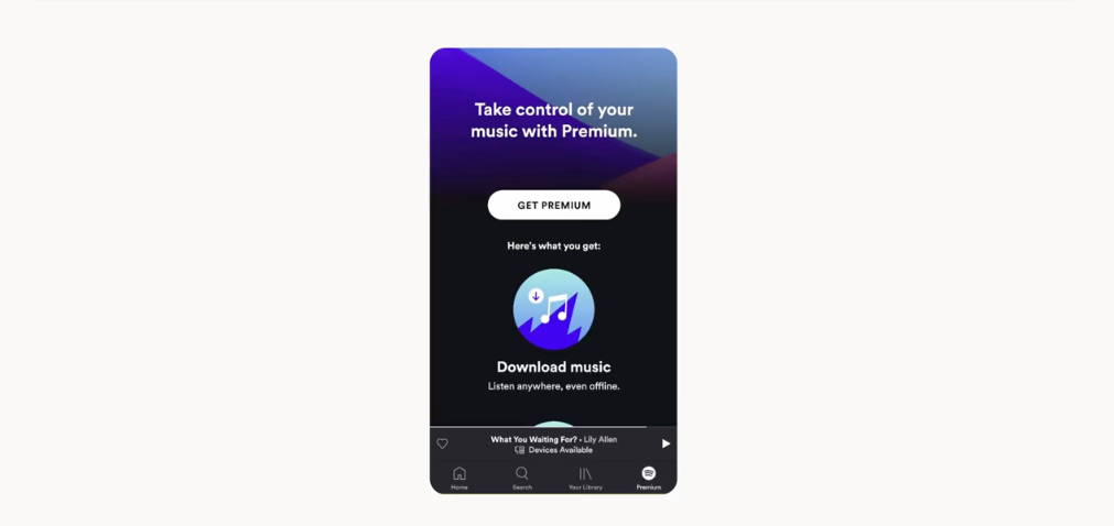 In the case of Spotify, the freemium user is treated to a taste of what the product is like for a premium subscriber, and rather than this feeling like a paywall, most of the time it feels like a teaser that becomes the hook, encouraging the user to make the jump to one of their paid memberships.